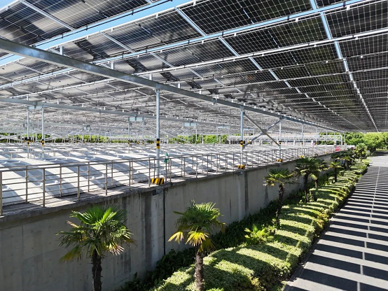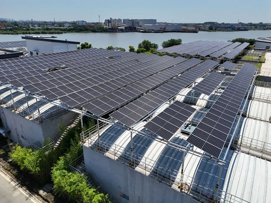 污水處理廠歷來是耗電大戶,而如何將其轉(zhuǎn)變?yōu)?/span>“發(fā)電高手”是蘇州工業(yè)園區(qū)相關(guān)主管部門特別關(guān)注的課題。蘇州工業(yè)園區(qū)第二污水處理廠利用廠區(qū)約4.4萬平方米反應(yīng)水池上空及建筑屋頂,鋪設(shè)550Wp高效單晶硅光伏組件10400塊,預(yù)計(jì)年均發(fā)電量約581萬千瓦時(shí),基本實(shí)現(xiàn)就地全部消納,每年可節(jié)約標(biāo)準(zhǔn)煤約1743噸、減少二氧化碳排放約3486噸,達(dá)到減污與降碳的雙重效果。此外,污水廠通過采用“剛性支架+柔性支架+屋頂光伏”的建設(shè)模式,最大程度利用了廠區(qū)的可建設(shè)面積,鋪設(shè)的光伏板可以遮擋部分池面,能有效抑制池內(nèi)水體藻類生長(zhǎng),減少人工清理頻次,實(shí)現(xiàn)“光伏+污水處理+人工濕地”三階跳。