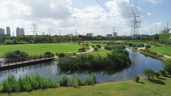 身姿優(yōu)美的魚兒在清澈的水里游弋,嬌艷的美人蕉亭亭玉立,這是一處“藏身”于二污廠里的生態(tài)濕地,濕地內(nèi)的水來自污水處理廠的再生水。2021年,二污廠擴(kuò)容升級(jí),在廠西側(cè)進(jìn)行二期改造,采用表面流人工濕地,尾水經(jīng)管道輸送至濕地進(jìn)行尾水提升后出水至吳淞江。濕地內(nèi)配有蘆葦、澤瀉、睡蓮、黃菖蒲、花菖蒲、香蒲、荷花等水生植物,升級(jí)后的“城市綠肺”人工濕地兼具尾水提升、生態(tài)補(bǔ)水、綠地景觀和防洪灌溉功能,日處理能力達(dá)15萬立方米,實(shí)現(xiàn)“污水廠+人工濕地”二階跳。