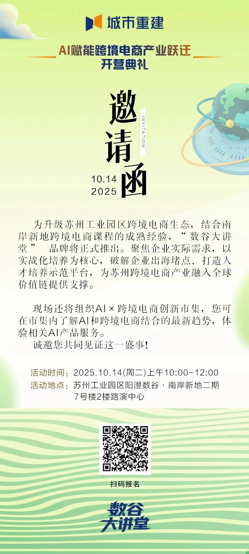 為升級(jí)園區(qū)跨境電商生態(tài),結(jié)合南岸新地跨境電商課程的成熟經(jīng)驗(yàn),“數(shù)谷大講堂”品牌將正式推出。聚焦企業(yè)實(shí)際需求,以實(shí)戰(zhàn)化培養(yǎng)為核心,破解企業(yè)出海堵點(diǎn)、打造人才培養(yǎng)示范平臺(tái),為蘇州跨境電商產(chǎn)業(yè)融入全球價(jià)值鏈提供支撐。現(xiàn)場(chǎng)還將組織創(chuàng)新市集,參與者可在市集內(nèi)了解AI和跨境電商結(jié)合的最新趨勢(shì),體驗(yàn)相關(guān)AI產(chǎn)品服務(wù)。