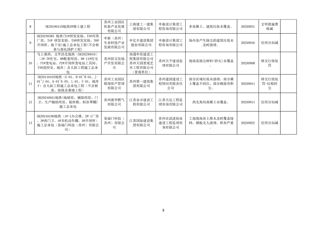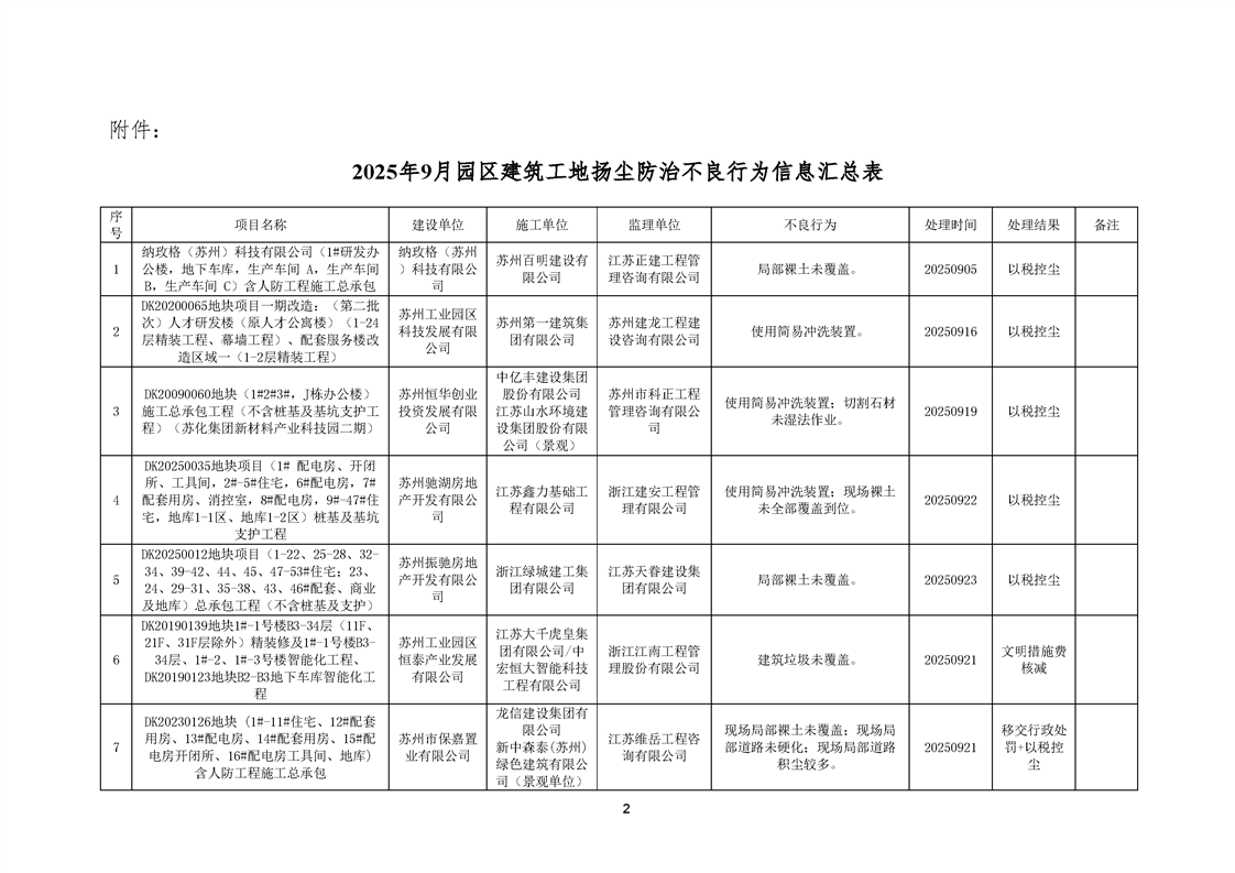 園區(qū)質(zhì)安站關(guān)于2025年9月份園區(qū)建筑工地?fù)P塵防治不良信息的通報(bào)