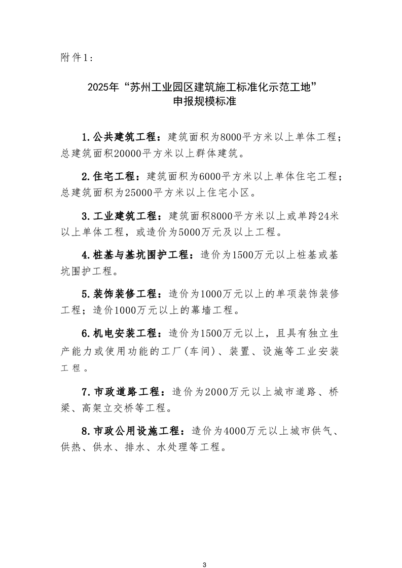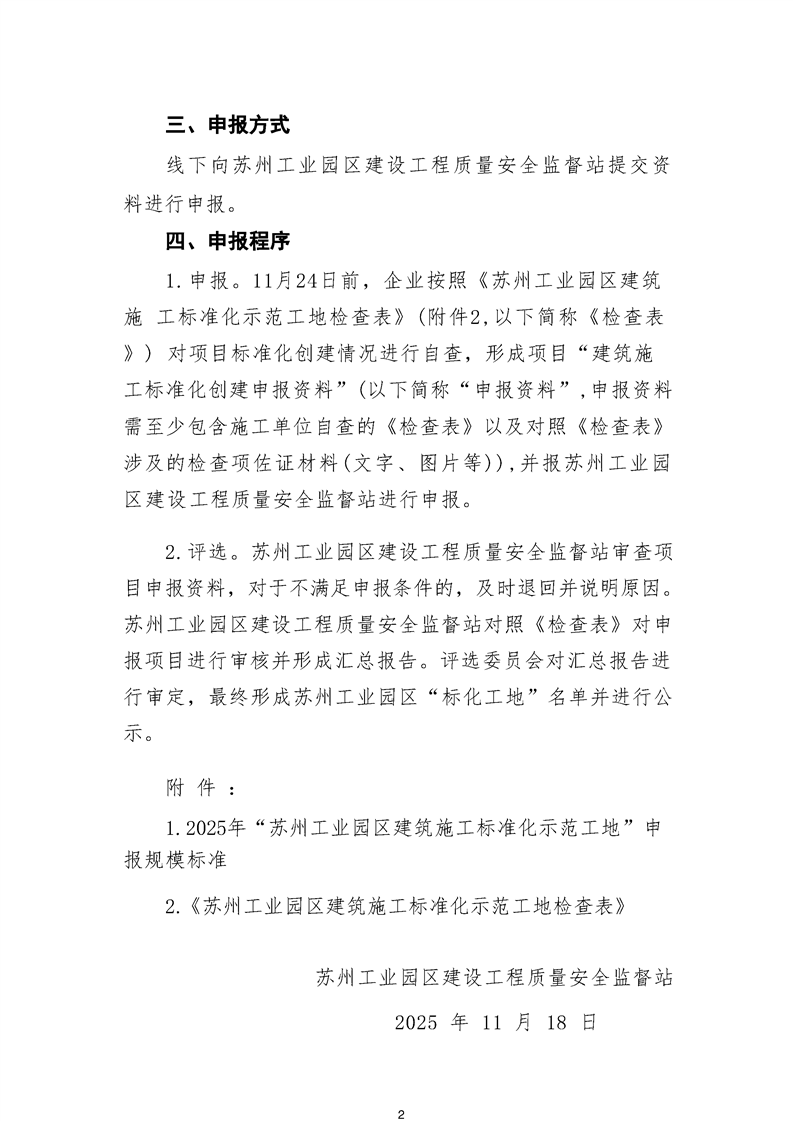 關(guān)于組織開展2025年“蘇州工業(yè)園區(qū)建筑施工標準化示范工地”申報工作的通知
