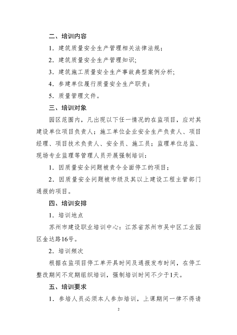 園區質安站關于對存在質量安全突出問題項目相關單位主要管理人員進行強制培訓的通知