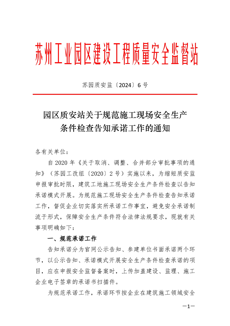 園區(qū)質(zhì)安站關(guān)于規(guī)范施工現(xiàn)場安全生產(chǎn)條件檢查告知承諾工作的通知