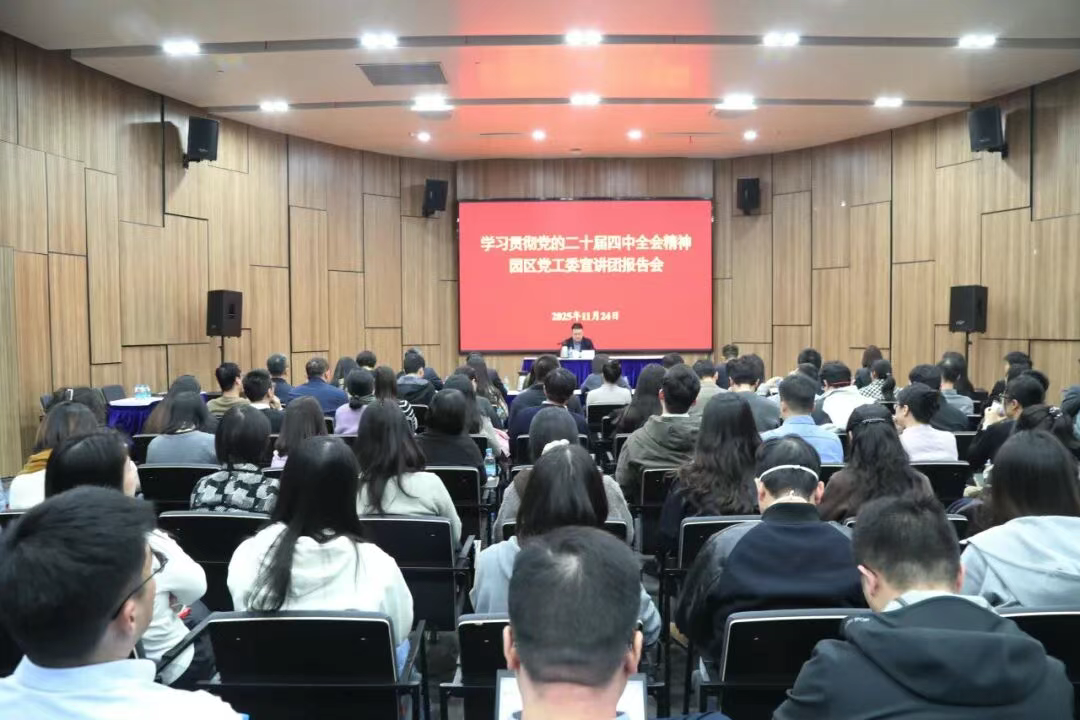 宣講會上,潘瑜圍繞習近平總書記在黨的二十屆四中全會上的重要講話和全會《建議》,從深刻認識黨的二十屆四中全會的重大意義和深遠影響,準確把握“十五五”時期在基本實現社會主義現代化進程中的重要地位,并結合園區科技創新工作實際,對全會精神作了全面宣講和系統闡釋。