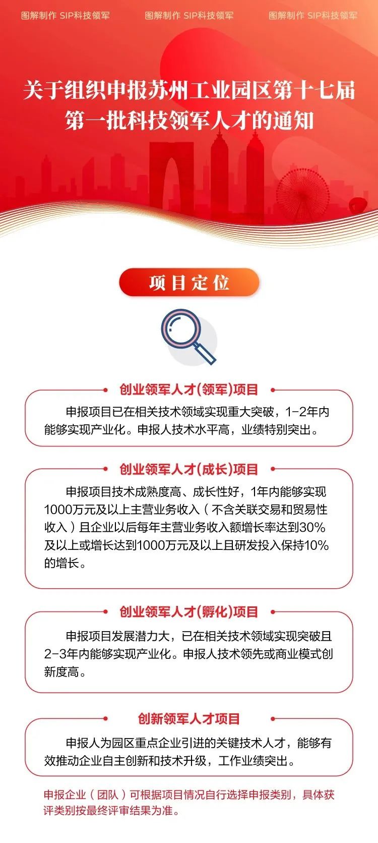 為加快推進(jìn)開(kāi)放創(chuàng)新的世界一流高科技園區(qū)建設(shè),進(jìn)一步加大高層次創(chuàng)新、創(chuàng)業(yè)領(lǐng)軍人才(團(tuán)隊(duì))引進(jìn)力度,不斷提升園區(qū)創(chuàng)新源地、產(chǎn)業(yè)高地建設(shè)水平,現(xiàn)啟動(dòng)第十七屆第一批園區(qū)科技領(lǐng)軍人才創(chuàng)新創(chuàng)業(yè)工程的申報(bào)工作。本屆科技領(lǐng)軍人才分兩批次集中受理評(píng)審,目前第一批正在申報(bào)。歡迎申報(bào),載體請(qǐng)選擇:蘇州工業(yè)園區(qū)科技招商中心!