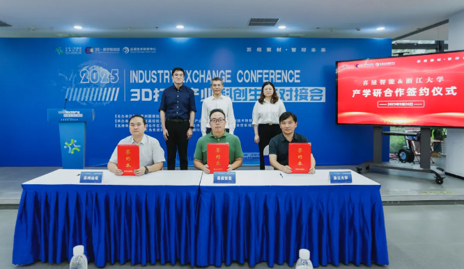 對接會現(xiàn)場,蘇州喜屋智能科技有限公司與浙江大學(xué)進(jìn)行了產(chǎn)學(xué)研合作簽約。未來,雙方將在技術(shù)聯(lián)合攻關(guān)、成果轉(zhuǎn)化落地等方面展開深度合作,共同為蘇相合作區(qū)3D打印產(chǎn)業(yè)的發(fā)展積勢蓄能。