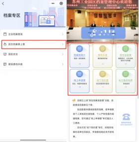 在微信搜索欄輸入“蘇州工業(yè)園區(qū)一網(wǎng)通辦”小程序,進入小程序點擊下方“專區(qū)”,在“檔案專區(qū)”找到“民生檔案掌上查”,點擊認證登錄即可查詢。也可以掃描二維碼,直接進入“掌上查”小程序。