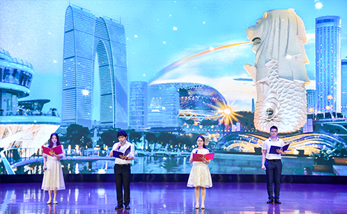 第二篇章“華麗蛻變 共謀發(fā)展新篇”,回顧園區(qū)發(fā)展波瀾壯闊三十年,以原創(chuàng)詩(shī)、雙語詩(shī)等形式展現(xiàn)園區(qū)日新月異的成就;其中《靜穆的躍升》一詩(shī)由新加坡作者原創(chuàng),由中國(guó)科學(xué)技術(shù)大學(xué)蘇州高等研究院和新加坡國(guó)立大學(xué)蘇州研究院兩校師生共同演繹,在語言的交織中傳遞著中新合作的力量。