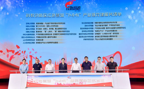 現(xiàn)場(chǎng),紅色慧湖“1+4+N”產(chǎn)業(yè)鏈黨建服務(wù)清單正式發(fā)布,旨在依托高校黨建聯(lián)盟這一資源集聚平臺(tái),聯(lián)合區(qū)內(nèi)四大載體公司、高校創(chuàng)新開展服務(wù)地方及產(chǎn)業(yè)發(fā)展的“N項(xiàng)”服務(wù)活動(dòng)。科教創(chuàng)新區(qū)黨工委將以此為契機(jī),持續(xù)推動(dòng)高校院所與地方產(chǎn)業(yè)發(fā)展的交流合作探索,全方位打造“鏈上”抱團(tuán)發(fā)展的動(dòng)力引擎,為產(chǎn)業(yè)鏈發(fā)展聚勢(shì)賦能。