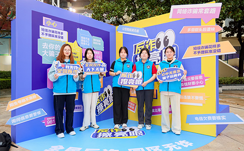 高校學(xué)生代表為到場觀眾帶來原創(chuàng)朗誦《反詐的交響》、原創(chuàng)反詐情景劇《我要投訴你》、原創(chuàng)反詐主題說唱歌曲《?。∥业腻X》等演出作品,以行動詮釋反詐意識、展現(xiàn)陽光校園。