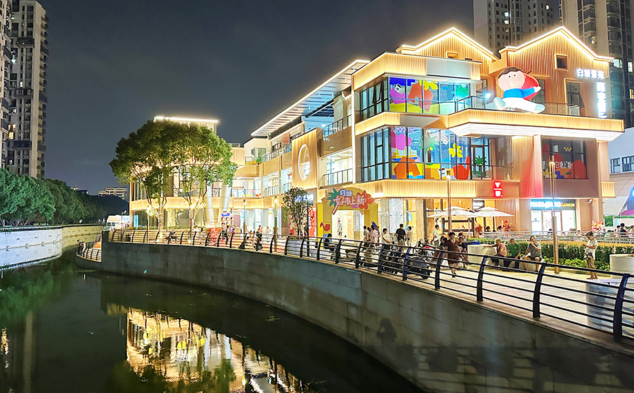 健身房的落地窗前,年輕人迎著朝陽舒展身體,充沛的活力感染著過往居民;有人牽著愛犬在濱水步道漫步,晨風吹拂水面,蕩起層層漣漪;24小時營業的便利店里,加班晚歸的上班族正挑選著熱食,溫暖的燈光驅散了夜晚的疲憊。“我們盼這條商業街好久了,現在‘老朋友’終于回歸了!不想做飯時,走兩步就能吃到干凈美味的飯菜,健身房、咖啡店也都是我們年輕人喜歡的,感覺特別貼心。”居民周女士難掩對社區生活品質提升的喜悅。帶娃的洪奶奶也連連稱贊:“吃過晚飯帶孩子來遛彎,有休息的長椅,步道也安全,孩子玩得開心,我們也能歇口氣,日子越來越舒心。”