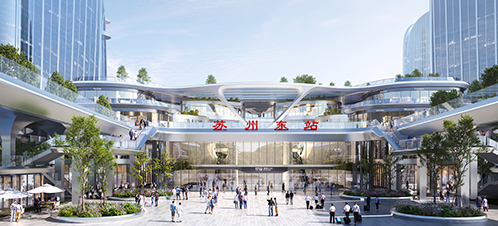 蘇州東駅は園區(qū)の桑田科學(xué)島の核心エリア、生物産業(yè)園の西側(cè)に位置する。同プロジェクトの初期開発用地は約45ヘクタール、建築面積が合計147萬平方メートルで、駅、商業(yè)施設(shè)、ホテル、研究開発オフィス、住宅、都市総合サービスなどを一體とする。建設(shè)完成後、一日の利用者は約18萬人を見込んでいる。駅の主體は地上1階、地下3階(部分的に4階)で、合計4つのホームが建設(shè)される。