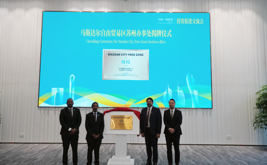 會場では、マスダール自由貿(mào)易區(qū)の中國事務(wù)所が正式に除幕?開所した。蘇州工業(yè)園區(qū)に設(shè)置されたこの連絡(luò)拠點(diǎn)は、マスダール自由貿(mào)易區(qū)と蘇州工業(yè)園區(qū)の産業(yè)活力が深く融合したことを示すものである。
