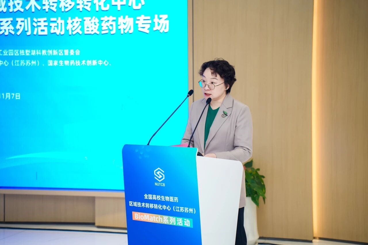 近日,全國高校生物醫(yī)藥區(qū)域技術(shù)轉(zhuǎn)移轉(zhuǎn)化中心(江蘇蘇州)(以下簡稱“蘇州生物醫(yī)藥分中心”)與國家生物藥技術(shù)創(chuàng)新中心、吉瑪基因、中科蘇州藥物研究院聯(lián)合主辦的BioMatch系列活動核酸藥物專場圓滿落幕。本次活動聚焦核酸藥物領(lǐng)域,通過現(xiàn)場推介、成果路演、專家點(diǎn)評等環(huán)節(jié),搭建起技術(shù)交流、項目對接與資源整合的高效平臺,加速高校創(chuàng)新成果向現(xiàn)實(shí)生產(chǎn)力的轉(zhuǎn)化與落地。