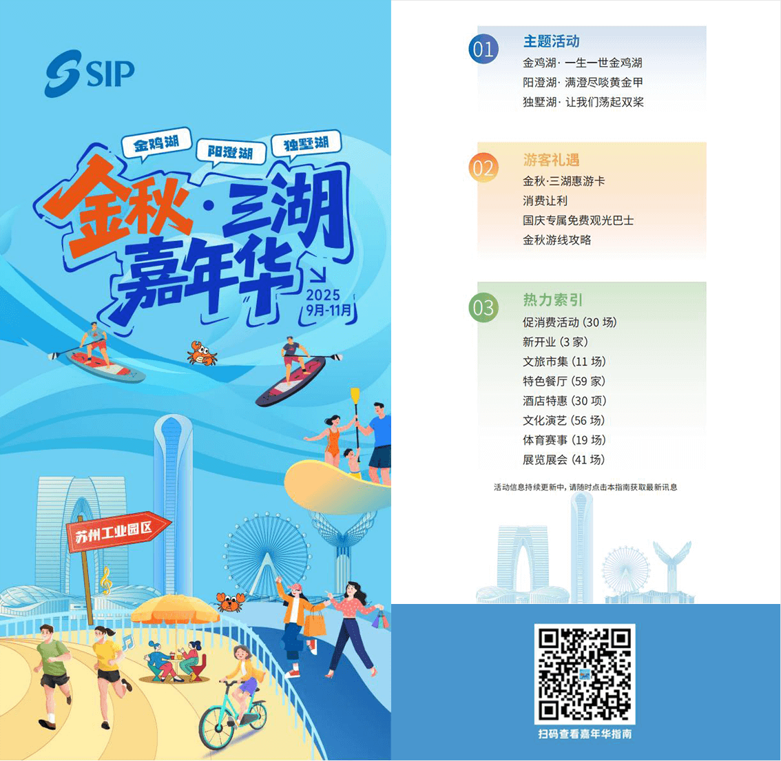 2025年國慶中秋“超長黃金周”正式收官,蘇州工業園區依托生態、文化、商貿完美交織的非凡魅力,交出一份亮眼的文旅“成績單”。據統計,假日期間,園區各景區景點游客接待量均創新高,金雞湖景區、陽澄湖半島旅游度假區累計接待游客278.44萬人次,同比增長20.2%,日均客流量同比增長5.18%。以金雞湖、獨墅湖、陽澄湖為核心打造的“金秋?三湖嘉年華”系列活動,成為引爆假期文旅消費的強大引擎,園區將國際化都市風貌與假日經濟深度融合,打造獨具特色的“現代江南”假日體驗,文旅消費展現出強勁的增長態勢。“金秋?三湖嘉年華”引爆全域 文旅活動精彩紛呈作為園區文旅商融合發展的年度重頭戲,“金秋?三湖嘉年華”... [詳細]