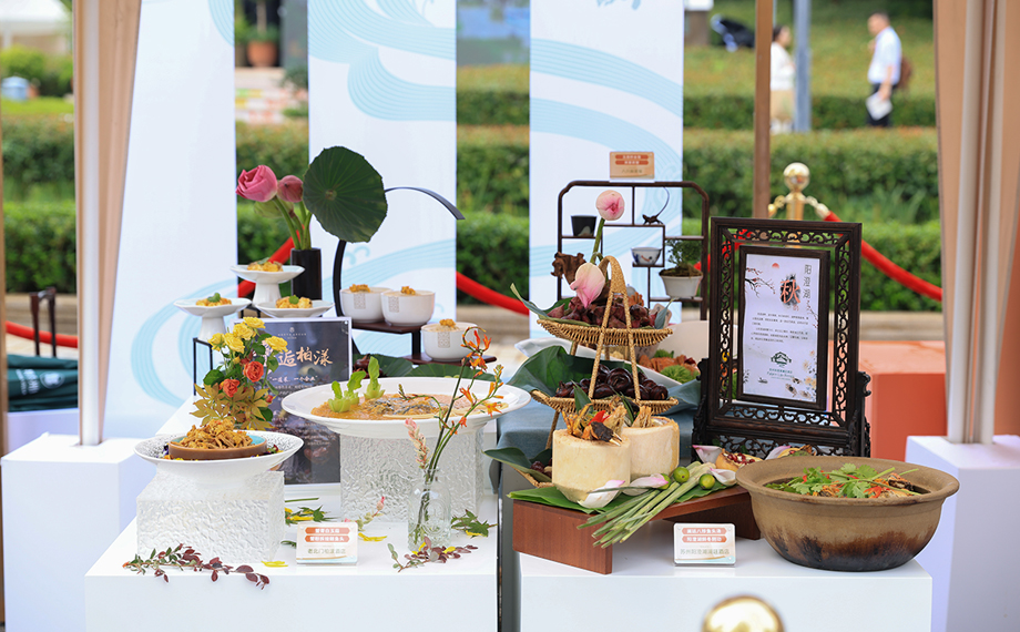 在河岸的展示區,選手們提前準備的“蟹味美學”展示菜,被精心擺放在錯落有致的展臺上。各式色香味俱全的菜品吸引了眾多市民游客紛紛駐足觀賞品鑒。