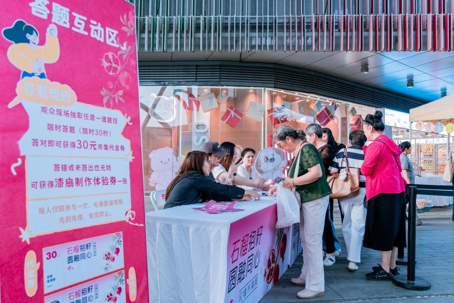 活動還設(shè)置了答題互動區(qū)進行有獎競答,互動區(qū)前人頭攢動,大家熱情高漲地參與民族知識答題,現(xiàn)場滿是對民族知識的探索熱情與互動活力。