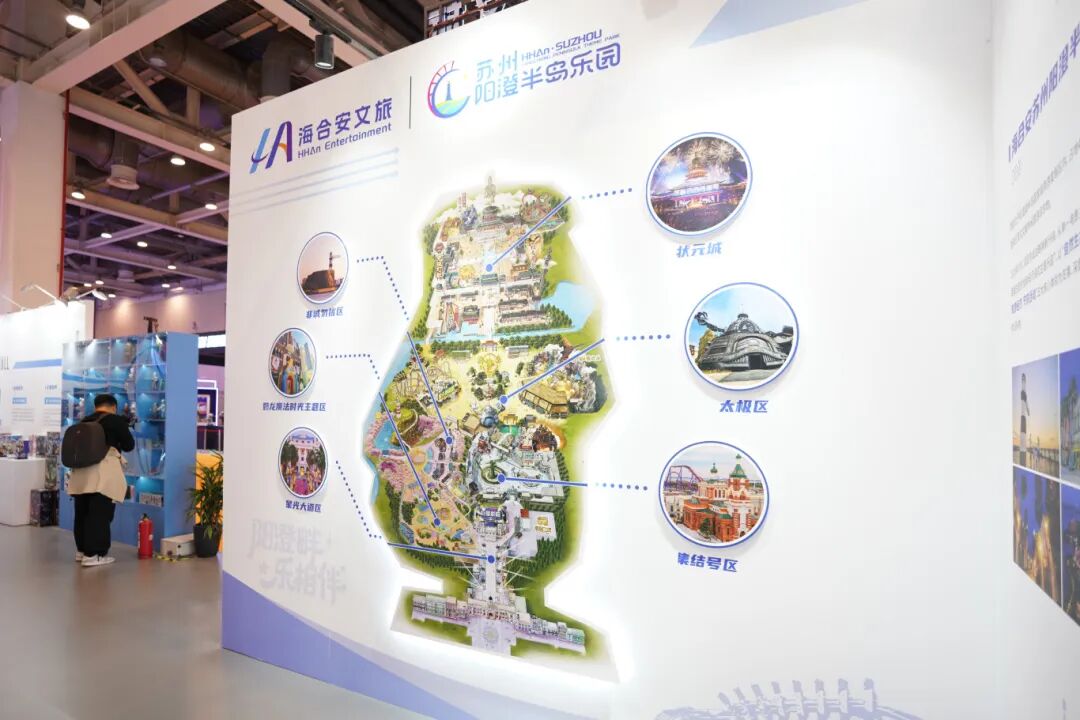 在文旅展區,蘇州陽澄湖片區以整體聯動之勢,展現出從傳統觀光向“沉浸式湖濱文娛目的地”的升級。作為區域文旅體驗的重要組成,蘇州陽澄半島樂園以“自然生態、魔法親子、國風文化、夜游經濟、節慶活動”五大核心體驗為特色,觀眾可在現場通過AI拍照裝置與熱門IP“奶龍”互動,沉浸式體驗“當狀元”的國風情境,感受文旅場景如何借助科技與創意實現“可玩、可感、可傳播”。