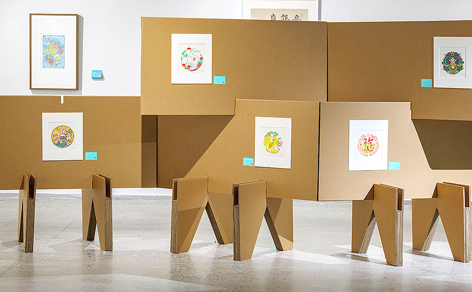 本次展覽以“技藝傳承—主題創(chuàng)新—生活轉(zhuǎn)化”為脈絡(luò),堅(jiān)守核心技藝并融入當(dāng)代視角,為觀眾帶來(lái)“可看、可感、可用”的審美體驗(yàn)。步入展廳,“生肖?!敝黝}裝置以桃花塢木刻的經(jīng)典紋樣為底,搭配十二集品牌的現(xiàn)代設(shè)計(jì)語(yǔ)言,仿佛一道時(shí)空之門,引導(dǎo)觀眾走進(jìn)傳統(tǒng)與當(dāng)代交織的藝術(shù)世界。新型介質(zhì)的巧妙運(yùn)用,打破了物理空間的限制,將年畫元素與空間融合,構(gòu)建出沉浸式的精神場(chǎng)域,讓觀眾更近距離體驗(yàn)傳統(tǒng)藝術(shù)的當(dāng)代活力?!靶偶笔钦褂[的靈魂,也是對(duì)慢生活的最好注解,展覽邀請(qǐng)觀眾在傳統(tǒng)年畫的細(xì)節(jié)中,體會(huì)藝術(shù)匠人的用心;在當(dāng)代藝術(shù)的創(chuàng)意中,感受“慢思考”帶來(lái)的靈感進(jìn)發(fā);在提筆寫信的瞬間,回歸內(nèi)心的平靜與純粹。