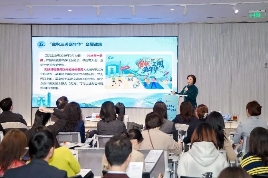 當前,園區正全力激發消費潛力與產業活力。今年園區重磅打造“金秋?三湖嘉年華”品牌活動,以金雞湖、陽澄湖、獨墅湖為核心,串聯商業、旅游、文化、體育、展覽等多元內容,織就全域體驗、多業融合的金秋畫卷。作為該系列讓利舉措之一,園區首次出臺企業在酒店辦展辦會的補貼政策,以真金白銀惠企利民。政策明確,自2025年9月13日起至2026年一季度,企業在園區酒店舉辦各類會議會展活動,除場租費用外的其他費用可享受20-25%補貼,最高可達10萬元。