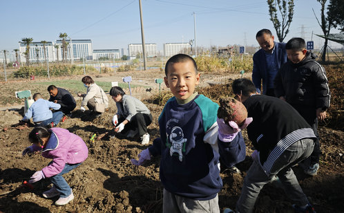 深秋的農場里,陽光灑在翻新的紅壤上,社區20組親子家庭在此開展“紅薯豐收日”農耕體驗。