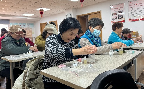 方悅社區活動室內暖意融融,居民們圍坐長桌,一場別開生面的養生錘制作活動在此拉開帷幕。社區工作人員提前備好艾草、棉花、彩布等材料。“先把艾草揉成球狀,再用棉布包裹嚴實……”社區志愿者孫阿姨一邊示范一邊講解,居民們小心翼翼地動起手來,將艾草塞進布套,再用彩繩編織錘柄。活動中,大家相互溝通交流,眼神好的居民主動協助高齡老人穿針引線,現場氣氛融洽。志愿者中醫師現場講解養生錘的使用方法,就大家感興趣的拍八虛進行示范。居民們邊聽邊用自制的養生錘互相體驗,李奶奶笑著說:“這錘子拿在手里沉甸甸的,敲起來真是舒服,比買的還好用!”此次活動將傳統養生文化與手工制作結合,既鍛煉了居民動手能力,又普及了健康知識,受到居民一致好評。活動結束時,社區工作人員為每位參與者發放了養生手冊,手冊中詳細標注了人體穴位圖和養生錘使用禁忌。