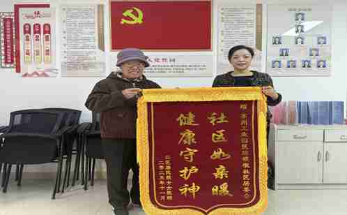 近日,瓊姬墩社區黨員殷臘梅阿姨一早專程來到社區,將一面飽含真摯謝意的錦旗送到工作人員手中。錦旗上“健康守護神社區如親暖”十個大字熠熠生輝,既是對社區便民健康服務的由衷贊譽,也定格了社區與居民心手相牽的溫暖瞬間。正是社區組織的健康檢測活動,讓她及時發現血糖異常并得到了及時治療,這份感激便凝聚在了這面錦旗之中。