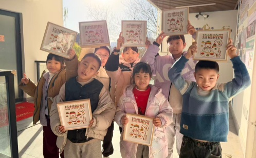 隨著春節的腳步日益臨近,“福字”非遺拓印活動將傳統年俗與文化傳承巧妙融合。紅宣紙、雕版、油墨等材料整齊備妥,孩子們輪流捶打刻有生肖圖案的木模板。伴隨著“咚咚”的聲響,形態各異的“福”字便躍然紙上。社區志愿者湯老師還適時講解二十四節氣的相關習俗,讓這項非物質文化遺產煥發出新的生機與活力。此外,活動特別設置了“福氣傳遞”環節,孩子們將親手制作的福字贈送給小區里的保安叔叔和保潔阿姨,以此傳遞美好的新春祝福。