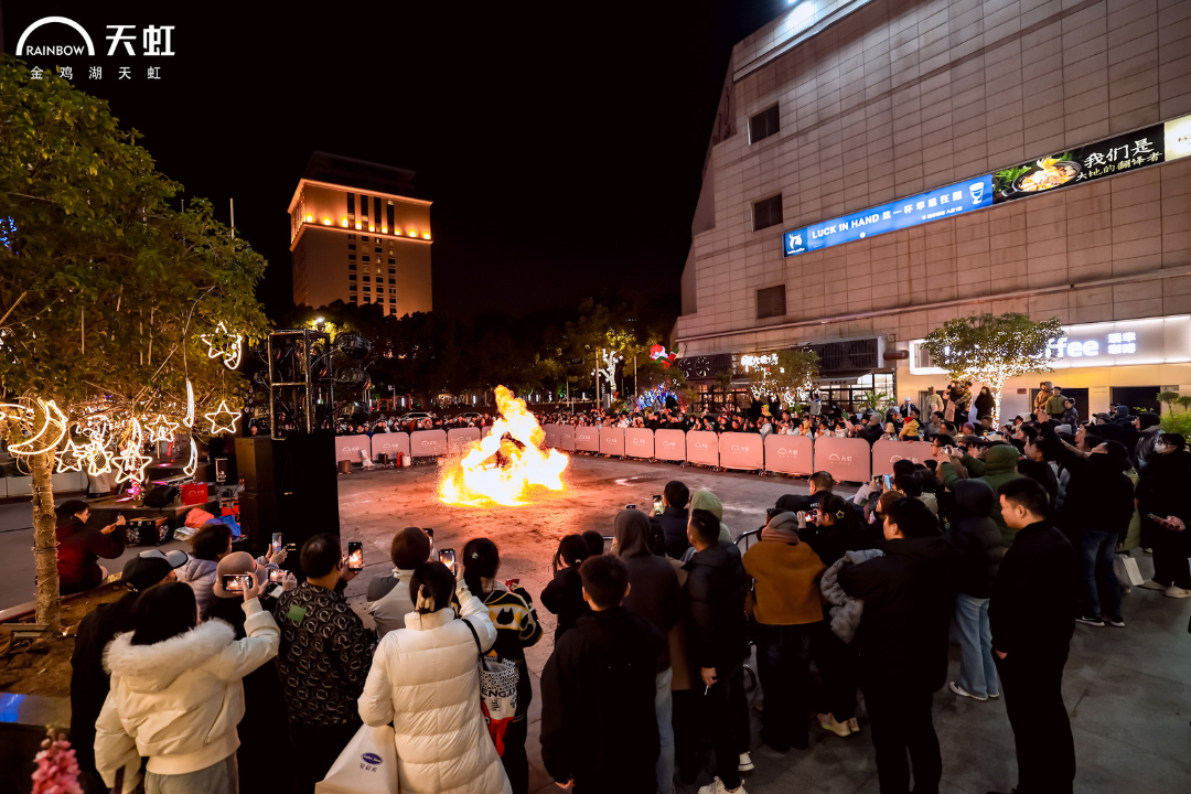 金雞湖天虹外廣場上,非遺打鐵花表演驚艷亮相,傳統(tǒng)非遺與潮流氛圍的激烈碰撞,帶來獨特的視聽雙重盛宴。