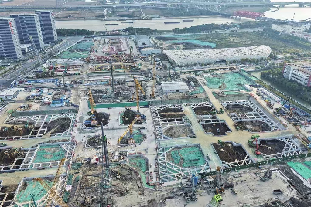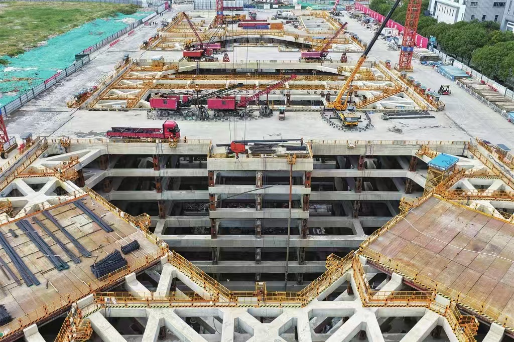 蘇州東站位于園區桑田科學島核心區域,是一座地下綜合性交通樞紐,車站總規模按4臺9線設計。建成后,這里將實現高鐵、城際鐵路、市域軌道、城市軌道的“四網融合”。圖為昨天下午項目建設現場。
