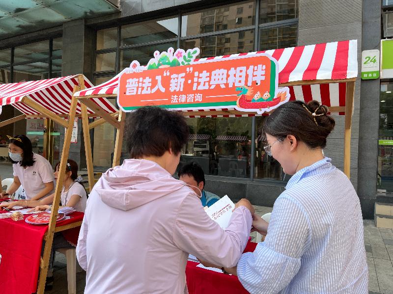 結(jié)合傳統(tǒng)節(jié)日,將法治宣傳與民俗文化等相融合開展特色主題活動,以群眾喜聞樂見的形式傳播民法典知識。園區(qū)司法局結(jié)合“砥礪奮進(jìn)新征程——走法治之路,悟法治力量,建法治蘇州”主題實踐活動,圍繞園區(qū)4條公民法治素養(yǎng)提升實踐路線11個法治文化陣地制作H5項目,開展“‘典’開地圖云游法治園區(qū)”線上答題挑戰(zhàn)賽;聯(lián)合園區(qū)教育局,在2所學(xué)校開展“法治非遺課堂”,寓教于樂,提升青少年法治素養(yǎng)。園區(qū)社會事業(yè)局邀請省優(yōu)秀婚姻家庭輔導(dǎo)員在結(jié)婚登記點與新人交流分享婚姻家庭相關(guān)法律知識,倡導(dǎo)文明婚俗,引導(dǎo)群眾構(gòu)建和諧家庭關(guān)系。園區(qū)法院結(jié)合節(jié)氣熱點制作“民法典宣傳月|麥穗未盈時,法潤民生處”互動普法圖文,以物業(yè)權(quán)益、鄰里糾紛等民生“小切口”詮釋法律“大道理”;打造“園法護(hù)原創(chuàng)”品牌并發(fā)布系列普法短視頻,運用AI動畫技術(shù)生動解讀民法典條款,推動法律條文從“靜態(tài)文本”向“動態(tài)場景”轉(zhuǎn)化。婁葑街道以端午節(jié)為契機,開展主題市集游園會,設(shè)置游戲互動、文創(chuàng)手作、普法宣傳、健康義診等特色區(qū)域,將民俗文化與法治宣傳、便民服務(wù)巧妙融合,推動法治精神融入居民生活。