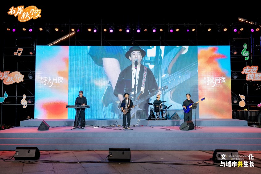 當晚的“右岸秋月夜”歌單,滿是秋的詩意與青春的朝氣,裹挾著蓬勃熱意感染全場。粵語經典《紅日》一響,瞬間點燃現場熱情;《戀愛ing》《小情歌》等曲目則以青澀旋律喚起共鳴。流行樂隊、實力唱將、素人歌手輪番登場,帶著對音樂的熱愛為演出注入鮮活能量。一首首經典曲目引發觀眾頻頻揮手合唱,手中的手環燈光閃爍交織,宛如一片璀璨星海,將獨墅湖的秋夜點綴得格外浪漫。