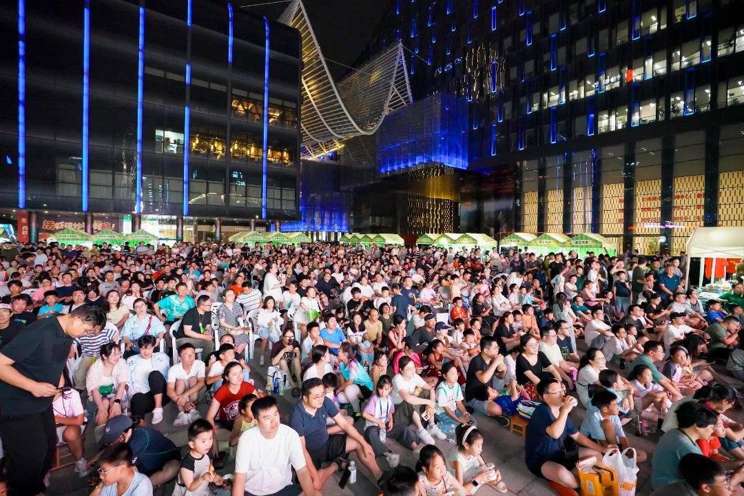 今年6月的一個(gè)周末傍晚,園區(qū)文星廣場(chǎng)逐漸熱鬧起來。巨大的投影屏幕前,聚集了不少身穿球衣的球迷。