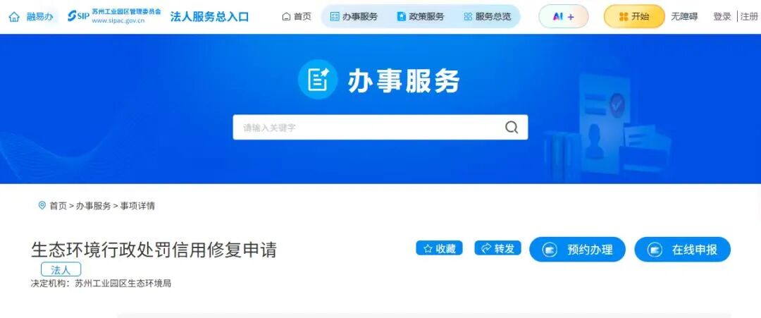 項目亮點:為持續(xù)優(yōu)化營商環(huán)境、破解企業(yè)生態(tài)環(huán)境信用修復(fù)審批難題,園區(qū)生態(tài)環(huán)境局聚焦企業(yè)辦事痛點、堵點、難點,于2025年5月在園區(qū)一網(wǎng)通辦平臺創(chuàng)新推出“生態(tài)環(huán)境信用修復(fù)審批全流程網(wǎng)上辦理服務(wù)”,以“不見面審批”打通企業(yè)信用修復(fù)的“最后一公里”。