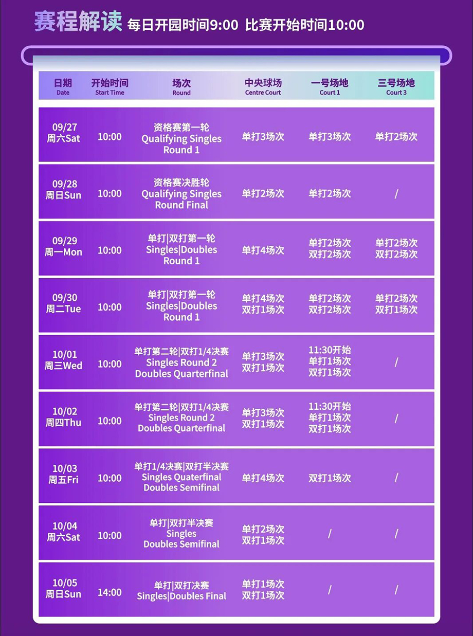 9月29日起 正賽全面開(kāi)啟單打雙打齊上陣