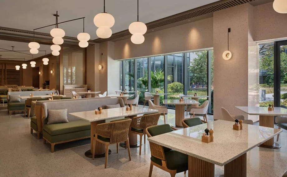 酒店配套2間餐廳及1間大堂吧,以“雅集”“閑游”的故事概念打造富有文化意趣的多元餐飲空間;同時配備超1500平方米的宴會空間,其中800平方米的無柱大宴會廳可靈活分隔為3個獨立空間,配備LED高清大屏及專業(yè)燈光音響系統(tǒng),可舉辦大型會議、展覽和宴會。酒店還擁有多間多功能會議室,可進行靈活組合或分隔,全方位滿足不同規(guī)格的會務需求。