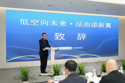 許文清在致辭中表示,低空經濟是新質生產力的典型代表,也是習近平總書記在中央經濟工作會議上明確要求打造的戰略性新興產業之一。園區作為蘇州的科技創新和產業發展高地,近年來緊抓低空經濟發展重大機遇,充分發揮資源要素、先進制造和場景應用優勢,全力推動低空經濟高質量發展,在通用航空和低空經濟兩大重點領域都取得了亮眼的成績,形成了低空經濟“科研底座硬、代表企業強、應用場景多”三大核心產業優勢。希望各級政府繼續支持和引導園區低空產業發展,相關企業、法律專家、代表委員集思聚能,共同推動園區低空經濟開創新局面。
